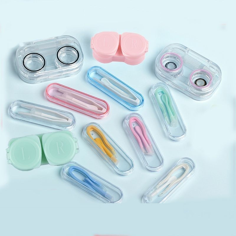 1Pcs Clear Contact Lense Case Kit Women Men Small Plastic Mini Contact Lenses Tweezers and Suction Stick for Special Clamps Tool