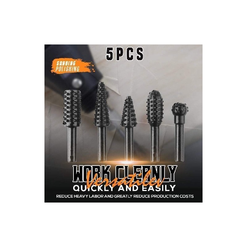 5PCS Rotary Rasp Files 1/4" Shank Grinding Head Burrs Wood Bits Grinding Power Carving Hand Tools