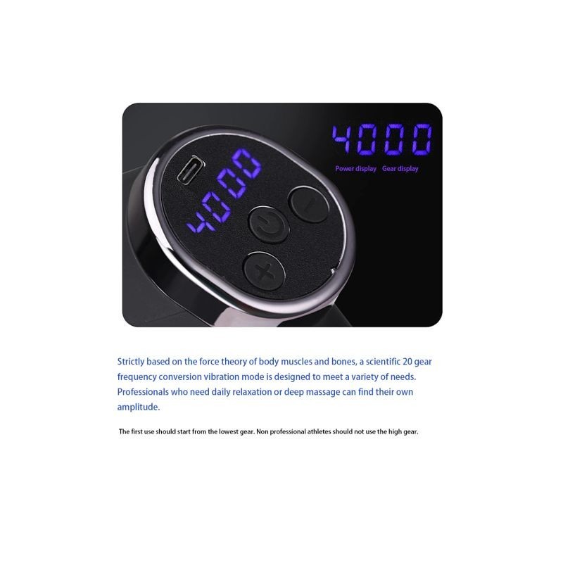 Hordozható professzionális masszázspisztoly LCD-kijelző Mélyizommasszírozó Fájdalomcsillapító Test-lazító Fascial Gun Fitness 20 sebesség