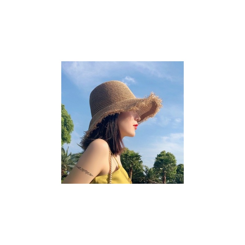 Summer Women Panama Hats Girl Wide Large Brim Floppy Beach Anti-UV Sun Hats Solid Dome Weave Visor Straw Cap Female Bucket Hat
