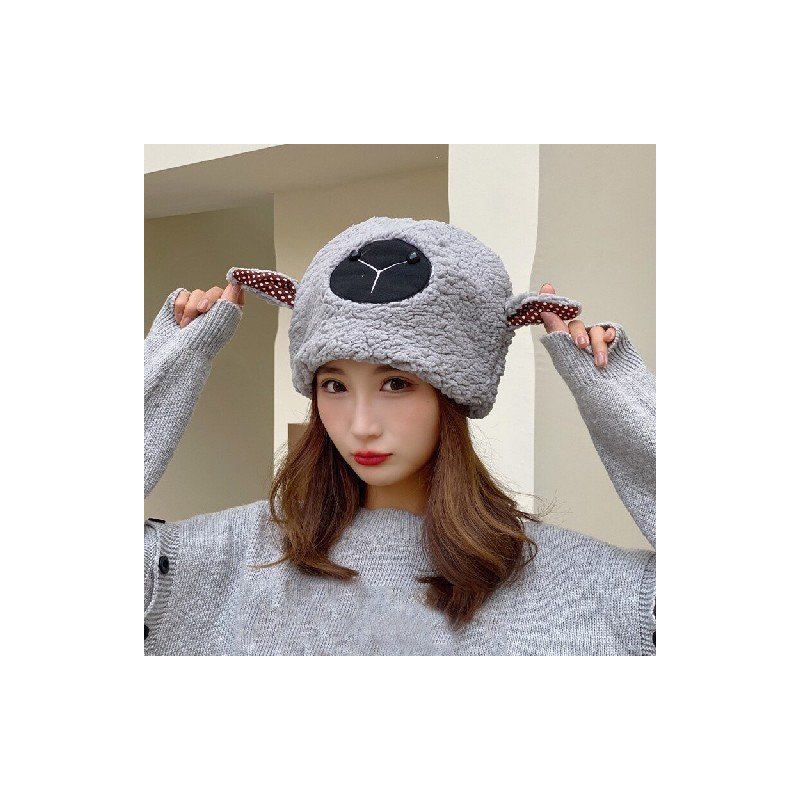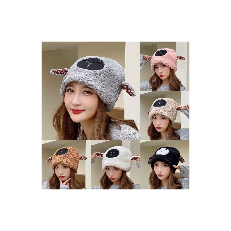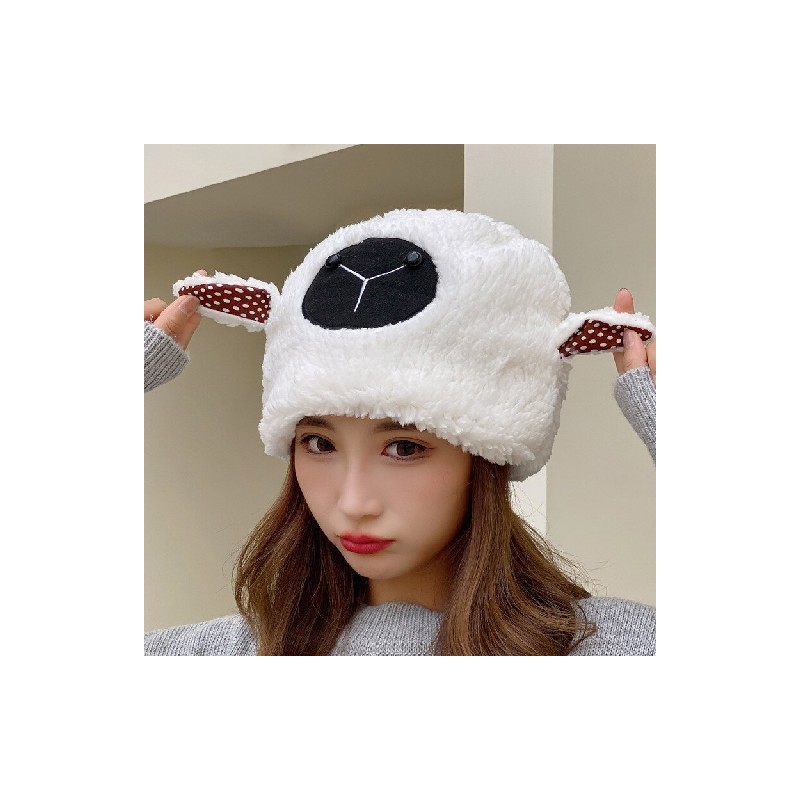 Cartoon Lamb Ear Beanie Hat Warm Cute Faux Fur Hats Casual Thickened Ear Protection Winter Skullies Beanies for Women Girls