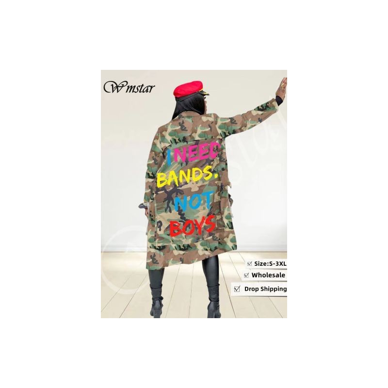 Terepszínű kabát, női ruházat, 2023 betűs kabát, divat, utcai viselet, hosszú stílusú felsők