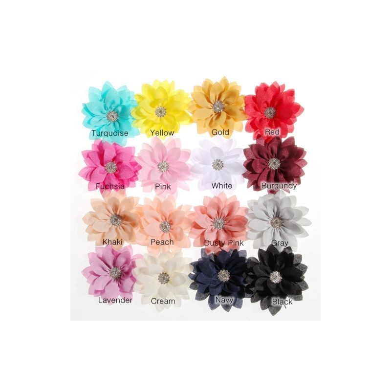 5 DB 8,5 cm-es 3,4 hüvelykes lótusz sifon virágok gombbal lányoknak fejpántok Műszövet virág hajkiegészítőkhöz