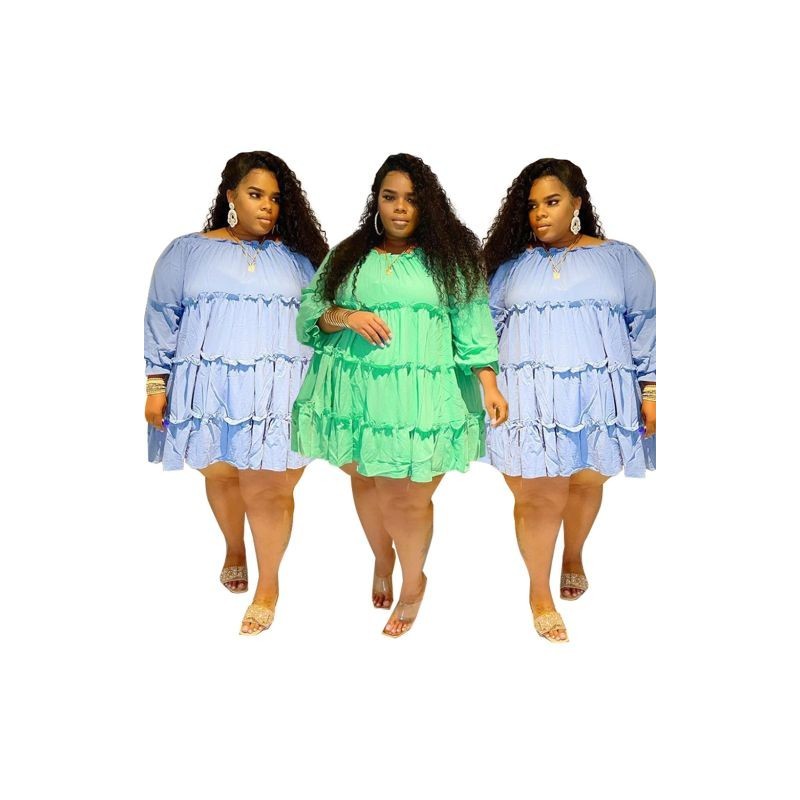 Fall Dresses for Women 2021 Plus Size Clothing Wholesale Casual Loose Cute Pleated Midi Dress Fashion Streetwear Dropshipping