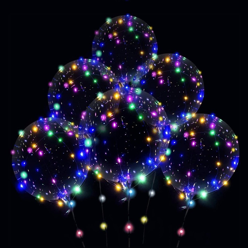 LED Bobo Balloons with Stick Transparent Light Up Bubble Balloons with String Light for Party Birthday Wedding Festival Decor
