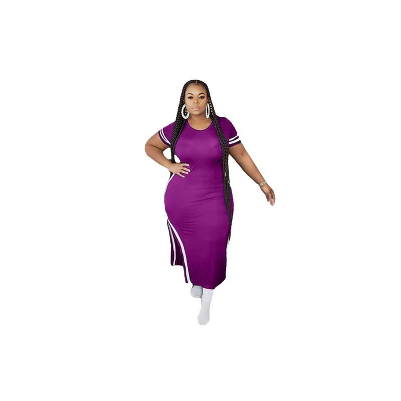 Alkalmi ruha Női Nagy méretű L-5xl Ruházat Rövid ujjú csíkos oldalsó Bodycon Stretch maxi ruhák női