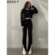 Akaily tavaszi utcai bordás 2, kétrészes készletek, női ruhák, nyakú, hosszú ujjú felső táskás nadrág, fekete hozzáillő szettek, női 2023