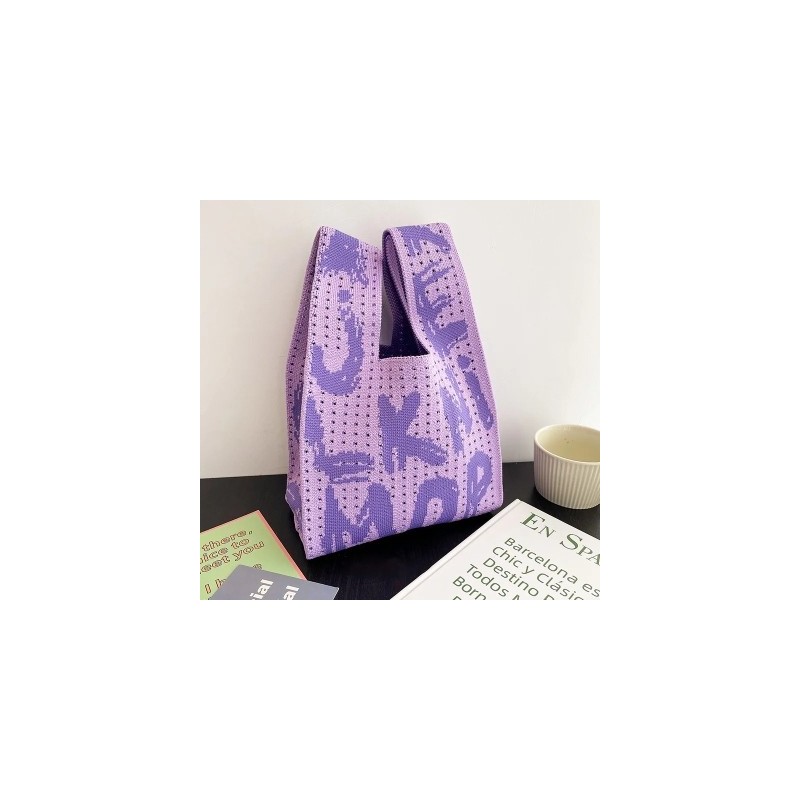 Hollow Letter Printing Knitted Handbag Vest Versatile Large Capacity Fashion Wrist Bag Summer Woman Korean Trend Lunch Bag Tote