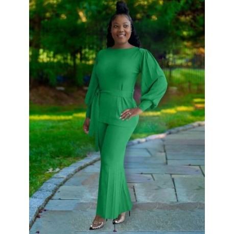 Office Ladies Two Piece Pant Suits for Women Long Lantern Sleeve Basic Tops and Elegant Pleated Bell Bottom Pant Lady Tracksuits