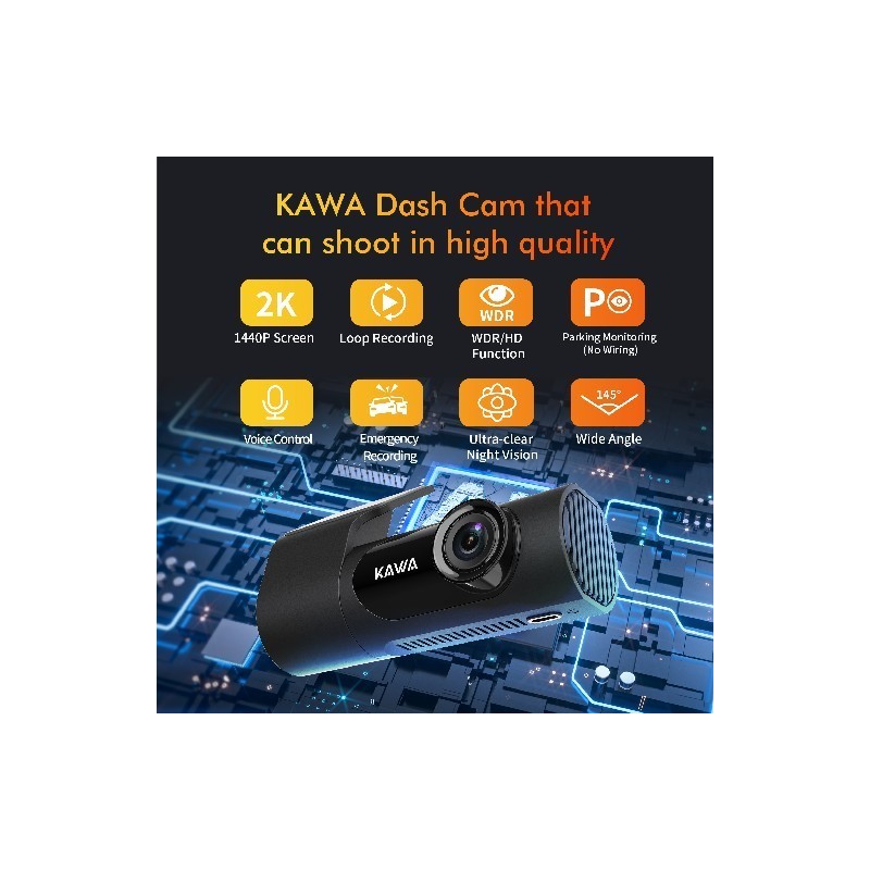 KAWA Dash Cam 1440P HD Car DVR Night Vision Dash Camera English Voice Control Recorder 24H Parking Mode WIFI & App Control Camer