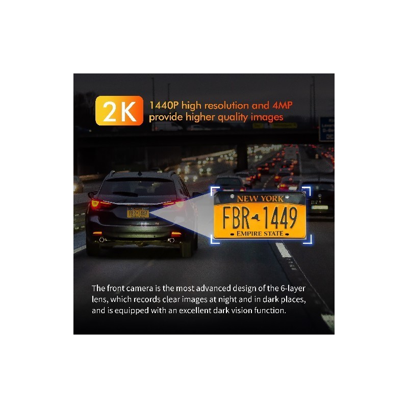 This smart dash cam allows you to get ultra-sharp resolution of 2560X1440P / 30fps to capture every road condition and license plate detail.