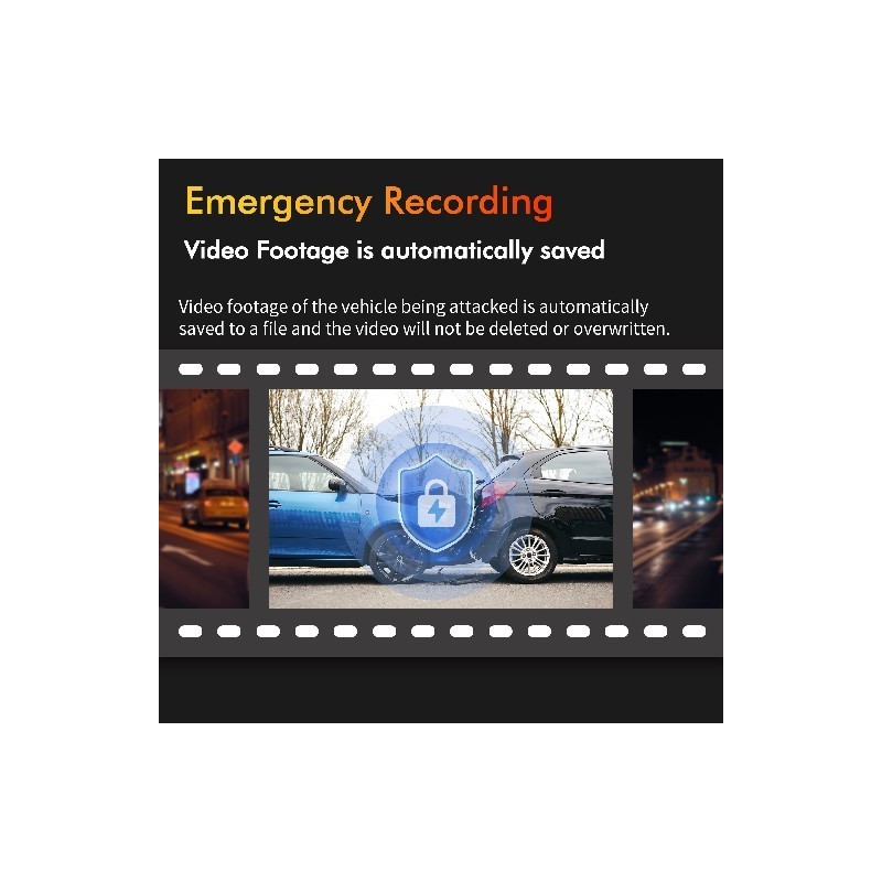 Parking mode monitors your car’s surroundings while car is parked.Keep monitoring when you are away. The built-in G-sensor can detect sudden shakes or collisions while your car is stationary, and will automatically start recording to capture any potential incidents.
