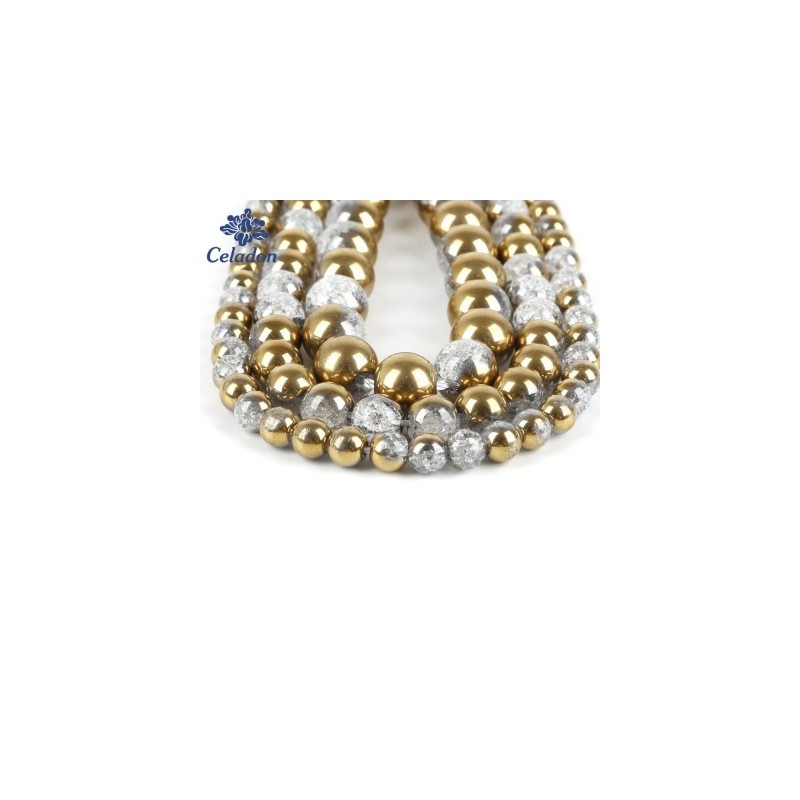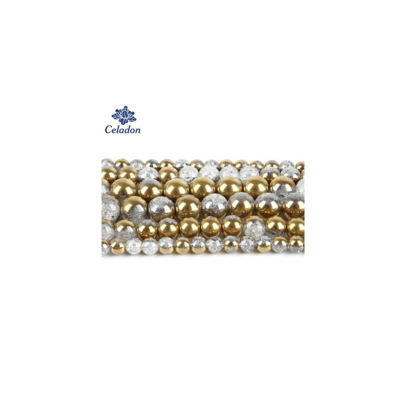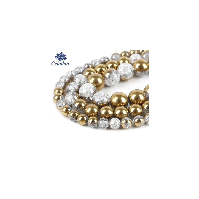 Újdonság 6/8/10/12mm egyik oldalon aranyozott repedt kristály természetes kő gyöngyök ékszerkészítéshez barkács karkötő nyaklánc