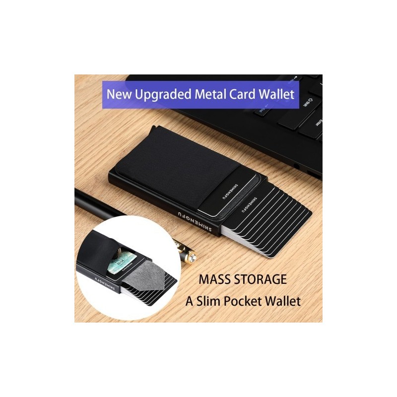 Rfid Smart Wallet Card Holder Metal Thin Slim Men Women Wallets Pop Up Minimalist Wallet Small Black Purse Metal
