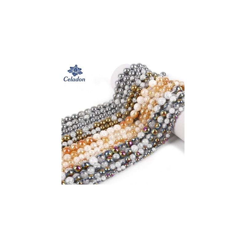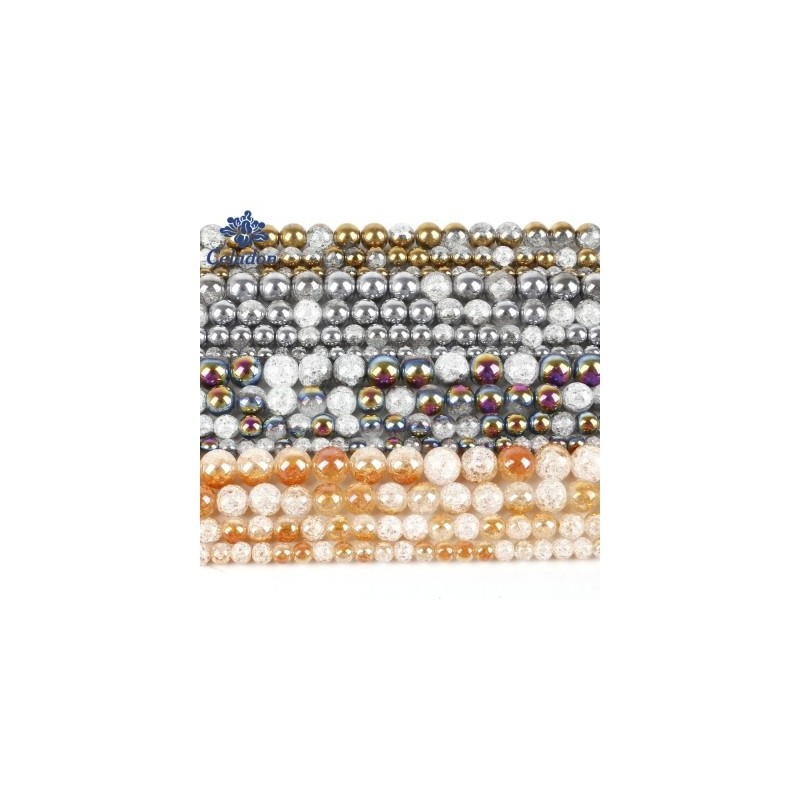 Nagyker 6/8/10/12 mm-es, egyik oldalon bevont színes repedezett kristály természetes kő gyöngyök ékszerkészítéshez barkács karkötő nyaklánc