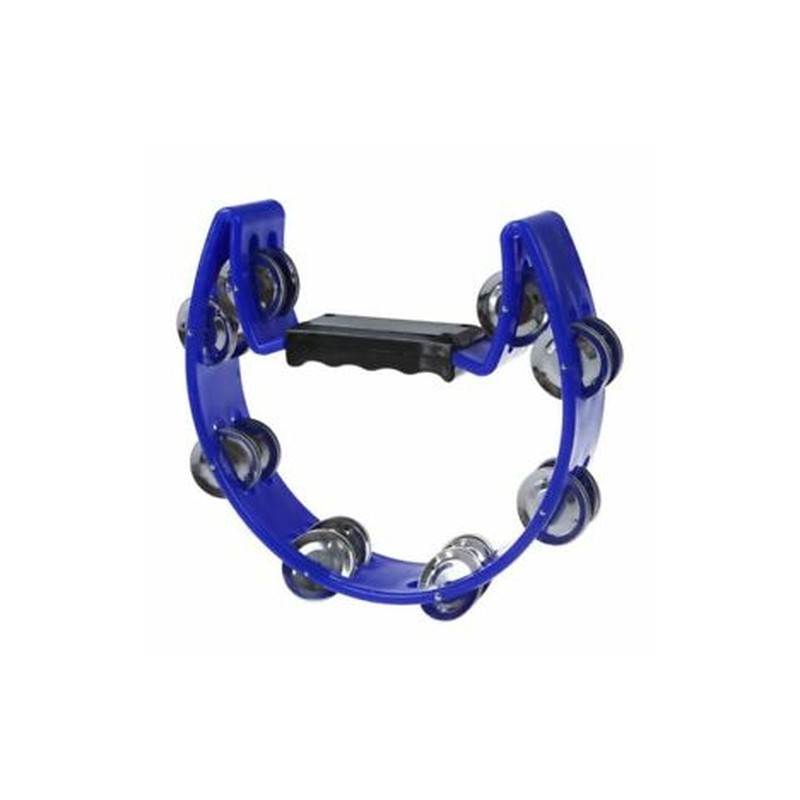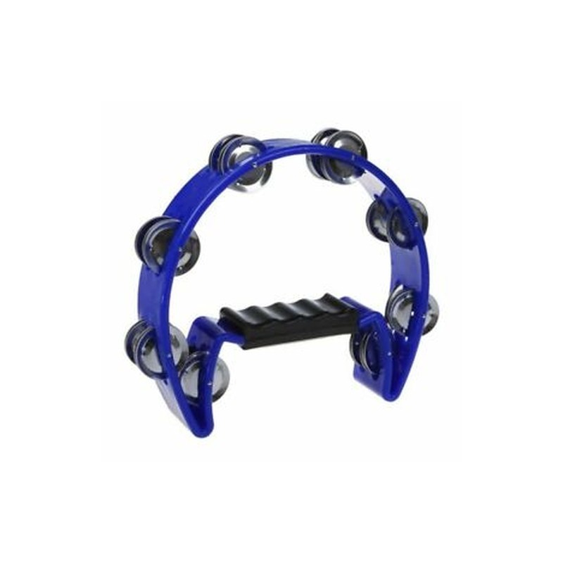 Tambourine Blue Hand Held with Double Row Metal Jingles Percussion Church B P8S1