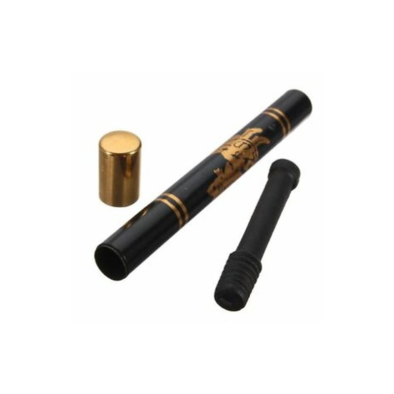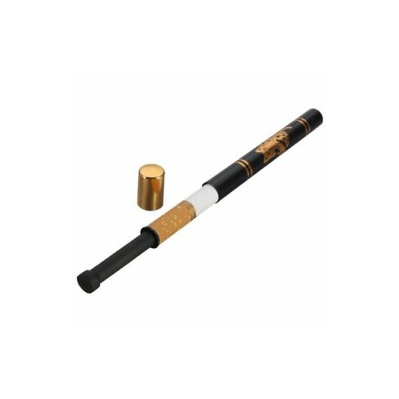 Put a cigarette in the black metal tube and close the tube with a gold cover.