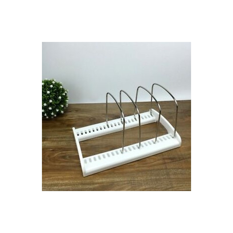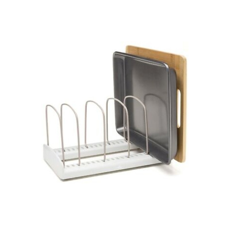 Install pans,plates and chopping boards in the lower cabinet or pantry (not included),With 6 adjustable dividers for perfect fit,keep it upright and easy to find,Sturdy coated wire securely mounted to the base;does not pop or scratch the pan,Soft,non-slip feet hold all the components in the cabinet in place and the round brackets remain in the center of the base
