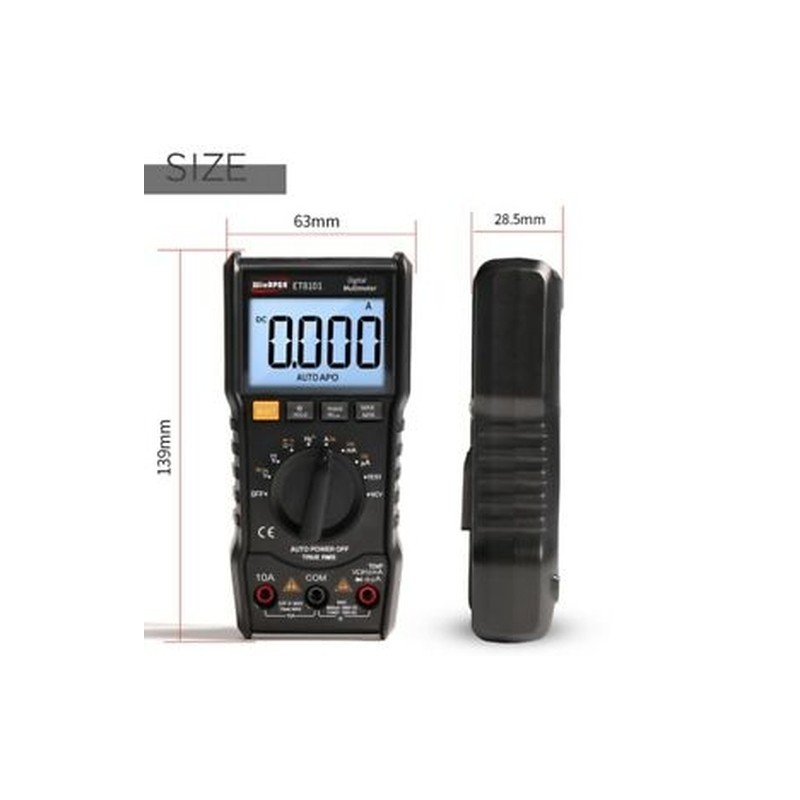 The 6000 counts is a pocket Multimeter 1000V 10A 3 5/6-bit automatic digital instrument. It has a stable performance, high precision, high reliability clear readings, and overload protection. the backlight can be bright can be automatically turned off after 15 seconds.